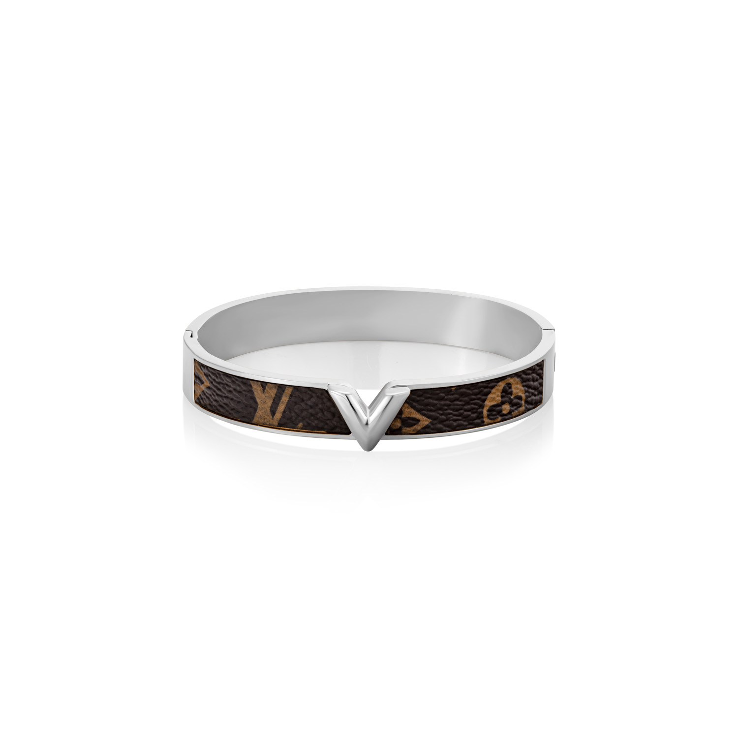 צמיד קשיח בגוון כסף דמוי עור וסיומת V עובי 7 מ”מ