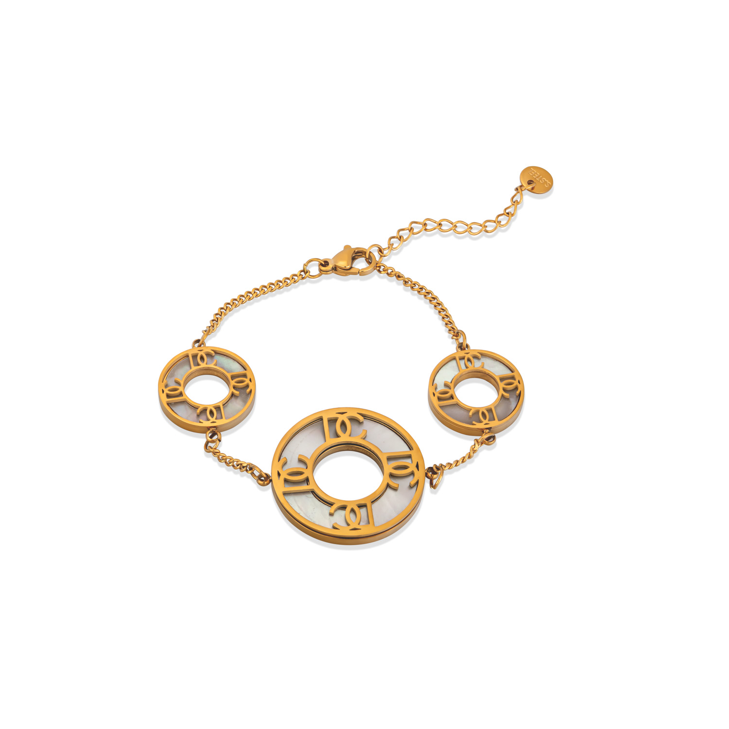 צמיד ג’אדי בגוון זהב עם טבעת ותליוני עיגולים משובצים