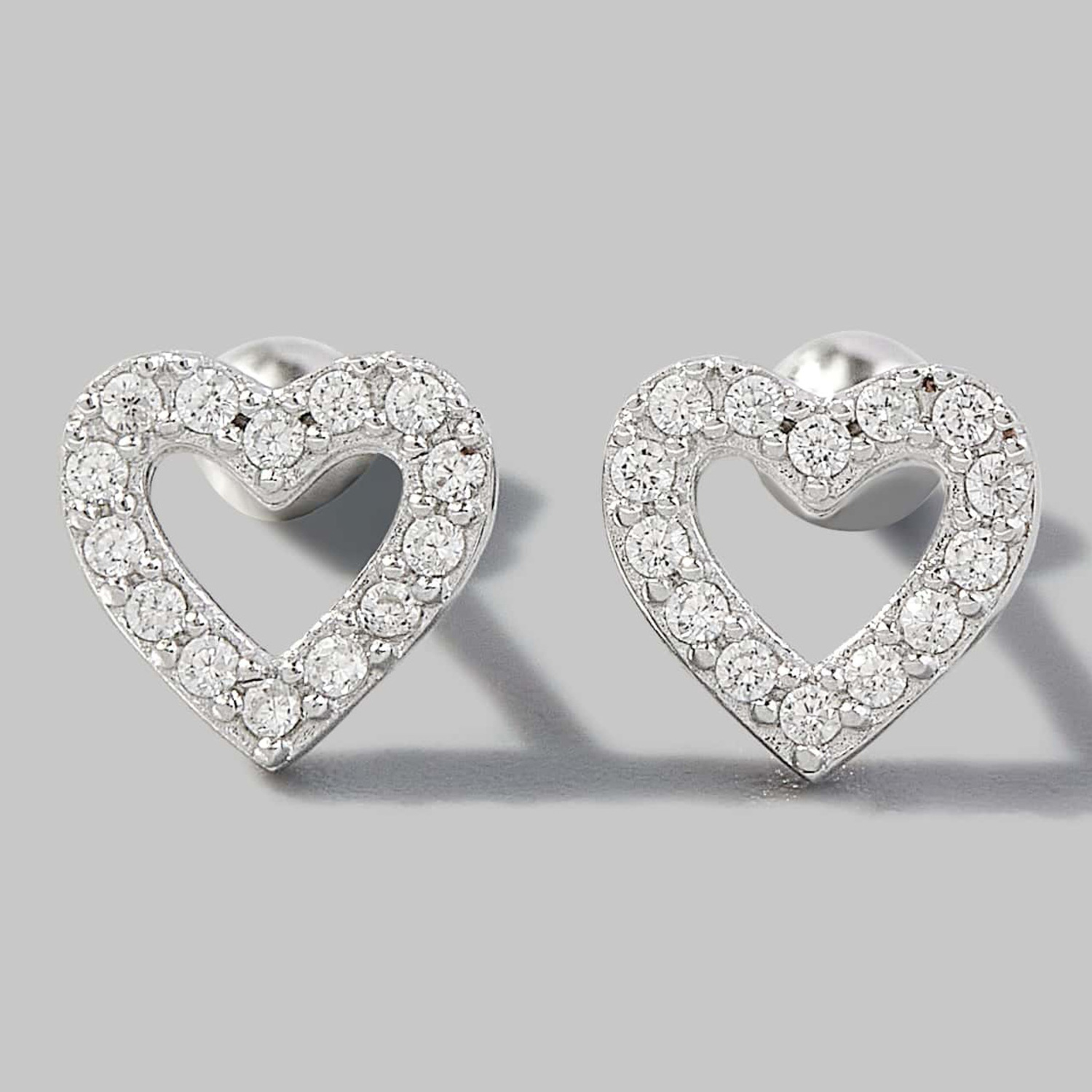 עגילי חישוק כסף 925 בעיצוב לב עם קריסטלים