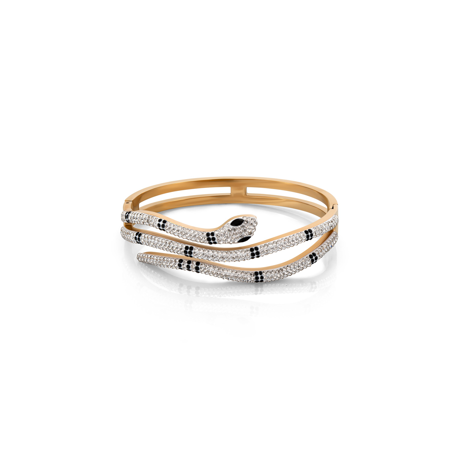 צמיד קשיח בגוון זהב בעיצוב נחש ייחודי, משובץ קריסטלים