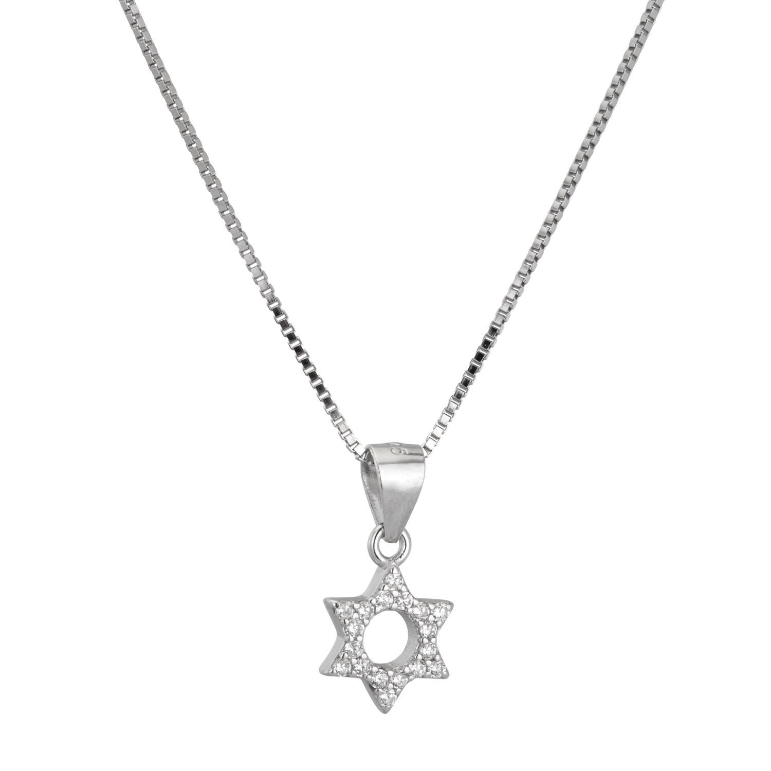 שרשרת כסף 925 עם תליון מגן דוד בעיצוב פתוח, משובץ אבני קריסטל